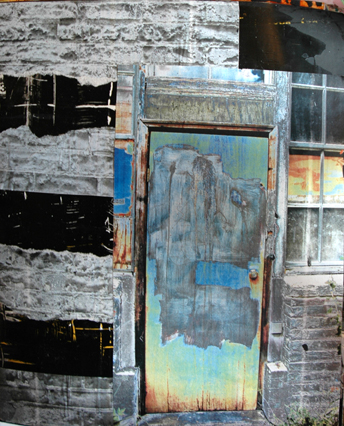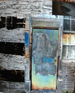 I don’t believe I ever posted the cover of my altered map book journal. The cover is a heavy laminated cardstock. I attached this photo of a doorway in an alley in St. Pete, collaged with a different photo most likely inverted in Photoshop. I believe I used the polarize setting on the door photo to give it the shimmery blue/green color. I love to take and look at photos of doorways, doors and windows. It’s interesting to imagine what is on the other side.