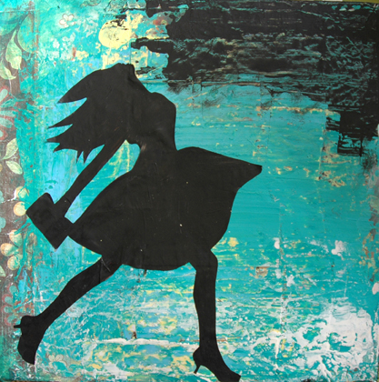 The most recent in my silhouette series on 12″ canvas. Free spirit out for a night on the town. This was a fashion magazine ad originally, cut out with a craft knife, painted with black gesso and matte medium to place it on top of the acrylic and gesso background. There was also an edge of scrapbooking paper still showing on the left side. This canvas was repurposed from one of my previous paintings. If stuff is around here long enough and I no longer feel it I have no problem painting over it. Enjoy your day!