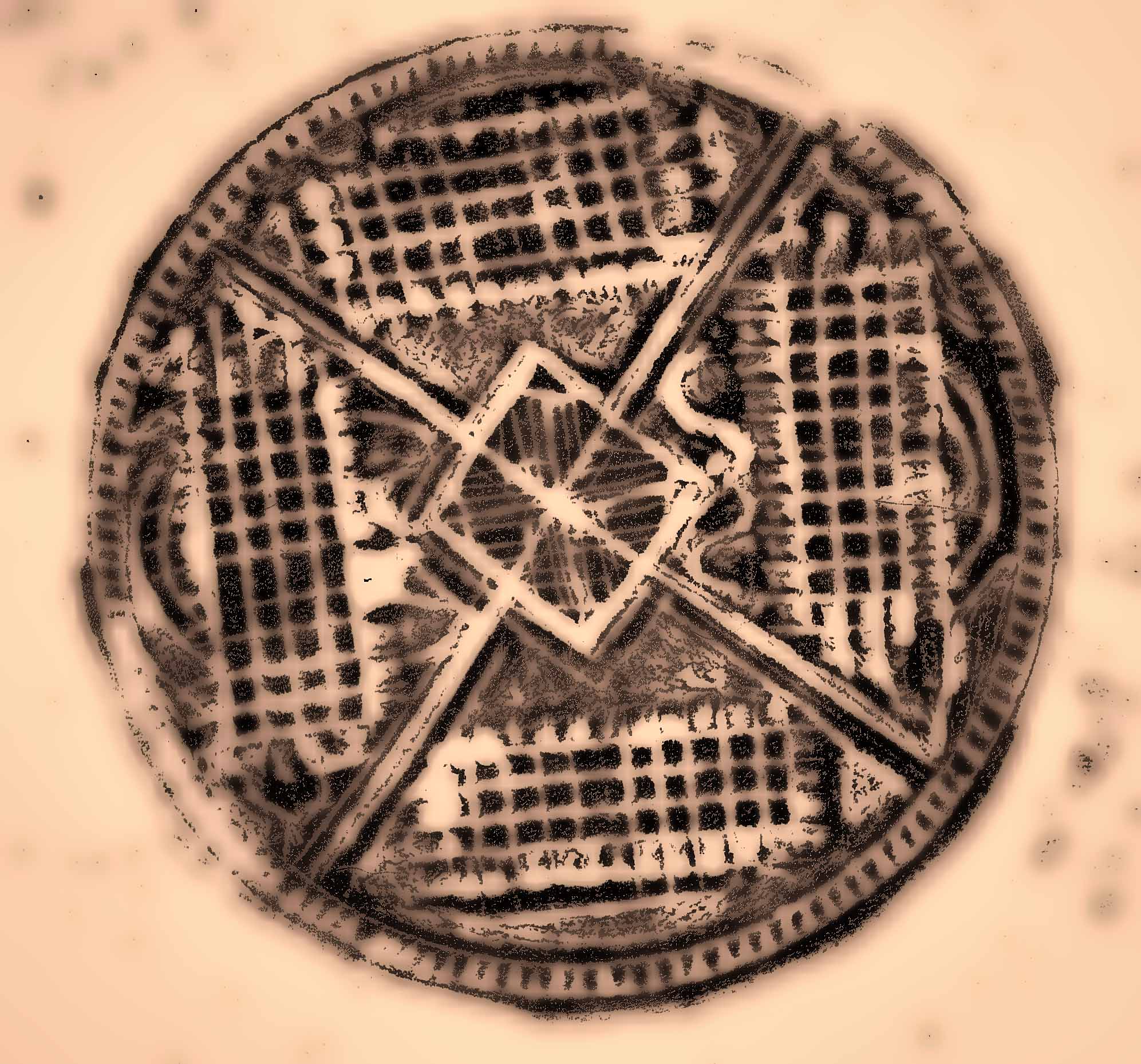 The hand-pulled print is black ink on white paper, so when scanned all you see is the circle itself. I cropped that original scan, leaving a white border. This is not a problem if you are going to print on white paper, the background is white. I think we’ve covered this before in a blog post back in the Day. However, since I did not remove the mandala from it’s scanned background, when I altered the photo it alters it all. And since one of the filters I chose has a fancy-schmancy toning process, it toned the entire scan. Now, I could have lassoed out the mandala in Photoshop Elements before or after Topazing, except I really stink at lassoing. It requires waaayyyy more patience than I generally have, especially since this is research. Altering photos is a lot more fun than lasso practice. And I’ve already been in the studio all morning, documenting about 6,000 pulled prints. Enough is enough. You can quote me.