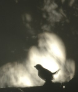 A couple of years ago as I went through my Florida room I noticed this beautiful cast shadow on the wall. There was a bird knick knack sitting on a shelf and the sun was hitting it just the right way to cast this lovely shadow. I was lucky to find my camera in time to record it. Note: if you haven’t captured shadow images yet, time is of the essence. The little blurries around the bird are actually light moving…it happens that fast. I save all my found shadow pictures, even blurries and bad compositions. I do what I can to photoshop the formats but the haziness is left unattended. This type of photography brings me such joy.